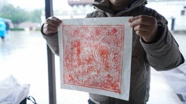游客展示拓印作品。大足区委宣传部供图